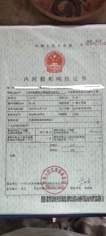 吉船出售64×12×4.6机590宁动06年6芜湖造2472吨报价114万尖双通舱,冲细砂船。