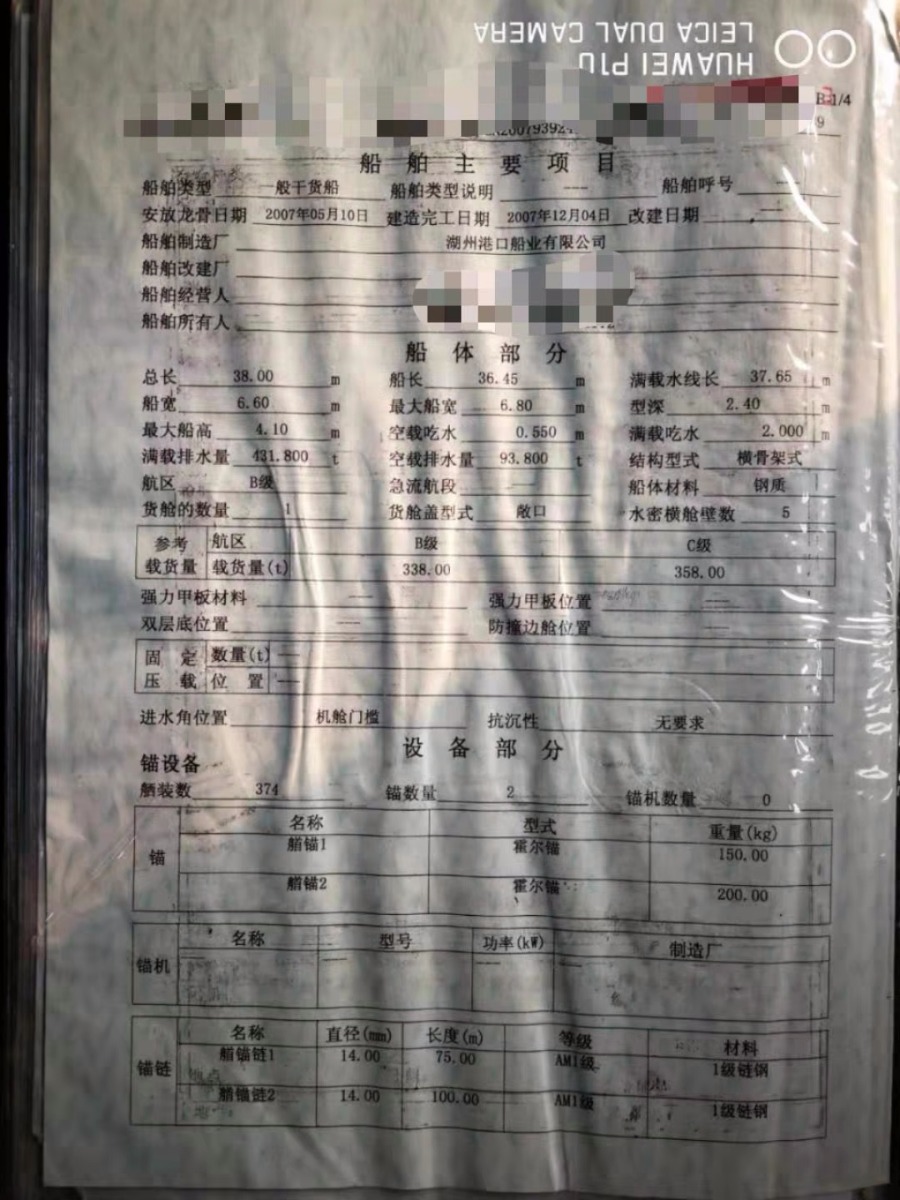 吉船38X6.6x2.4,浙江长兴港口船厂造2007年12月下水。马力上海兴隆202马力,手续浙江长兴,报价22万