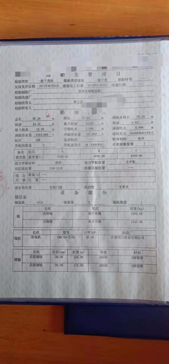 吉船 长80.2X14.45X5.65,2013年4月开航,泰州市海陵船厂造,尖头中驾,双邦,龙筋9道,80下料,甲板1.8米厚12个,水板12个,大圈14厚X57米长,主机淄博580X2,手续安微,配员5人,双雷达卫导,双高频,14寸大屏幕测水仪探头,登记报价366万