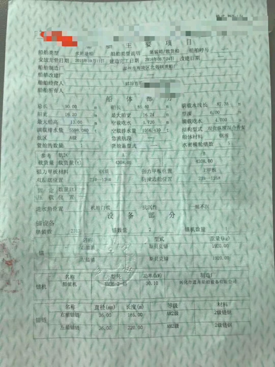 吉船90✘16.2✘6 泰州造 2016年 蚌埠户 尖头前驾 龙筋11道90公分下料 外壳10个 上面1米2是14个 川口14个 二层板14个 甲板16个 舱口62米 总吨3557 机器潍柴818马力两台 ,报价680