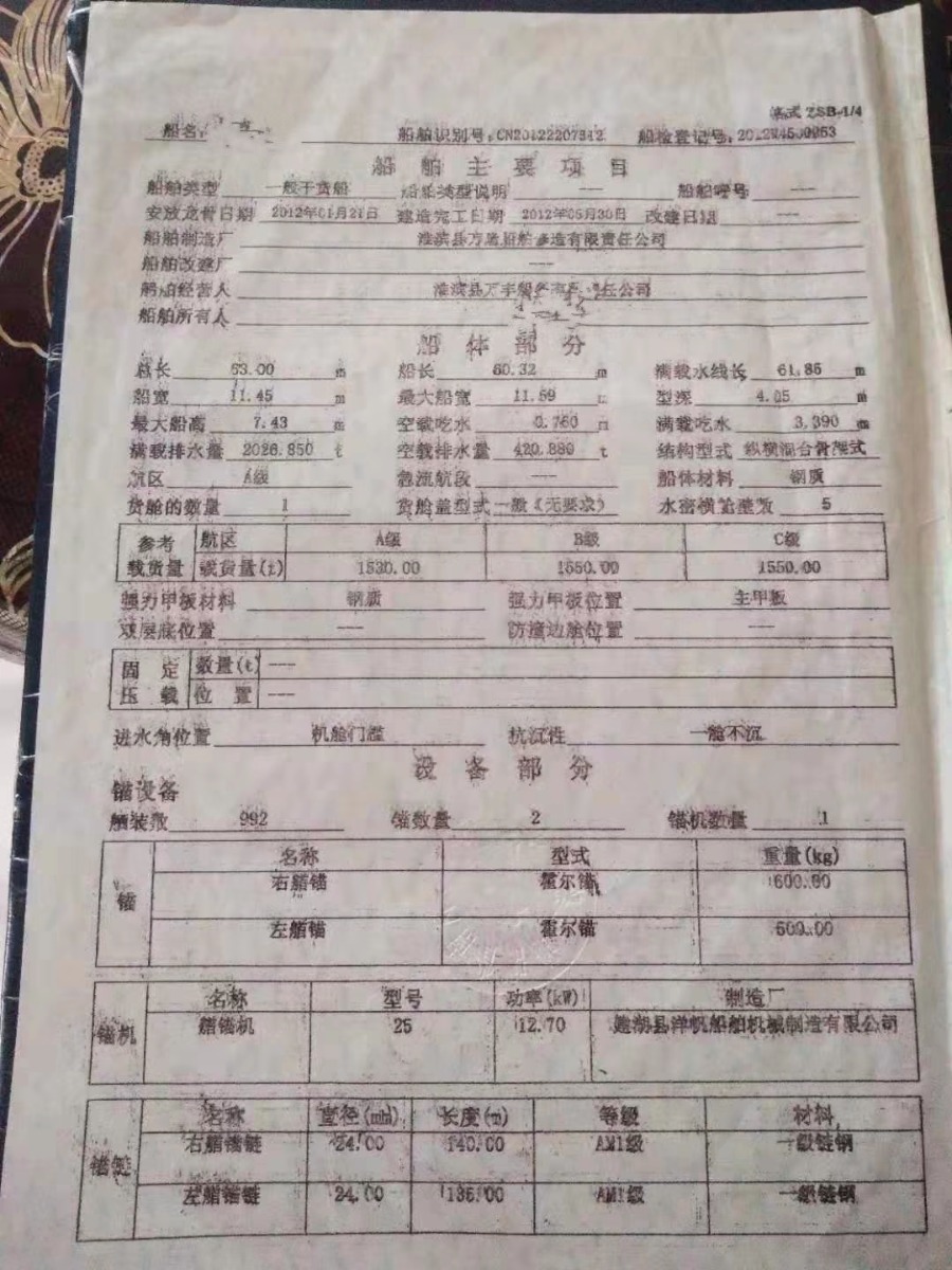 吉船 63x11.45X4.05尖头中架,驾驶室整体升降,2012年6月淮宾造9/75下料,单走杆,内骨架全8个板,二层板10个,甲板,仓口12,双占两副一强,淄博350马力,河南户任意转港,报价220万!