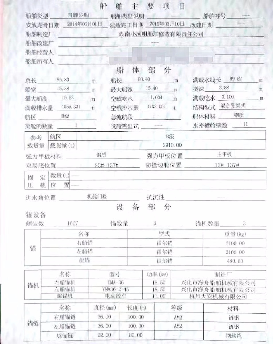 出售15年4000吨自卸砂船,95.8x15.4x3.88,潍柴8170型818x2台,2015年3月沅江,液压翻转架子38米/皮带1.4米,打货潍柴818马力,电控液压仓门手续齐全诚意转让.报价368万!