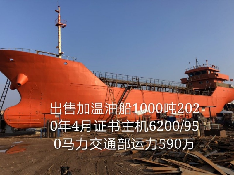 出售沿海加温油船1000吨,交通部运力,主机6200/950马力 登记价590万