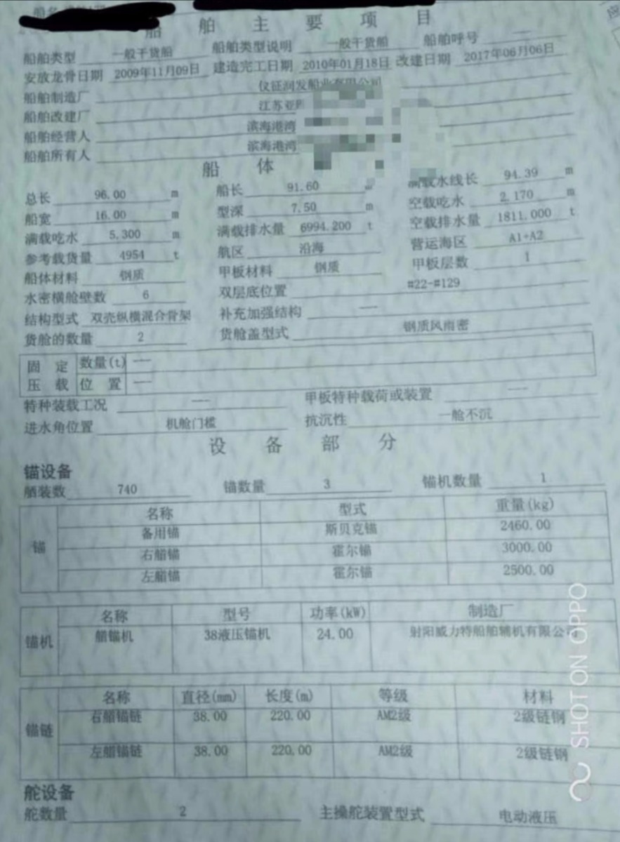 沿海A1十A2航区,主机潍柴950*2,装6000吨,正常干玄不超载。