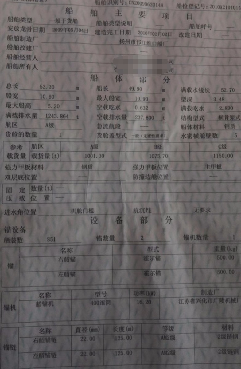 吉船 长53.2米,宽10.6米,深3.5米,2010年4月扬州造,