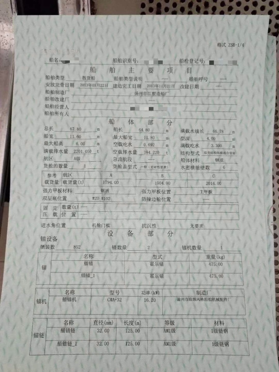 吉船长宽深:67.8米116米4米;前驾驶液压升降,扬州造,板材用料10x8;2019年11月报验油漆,特检