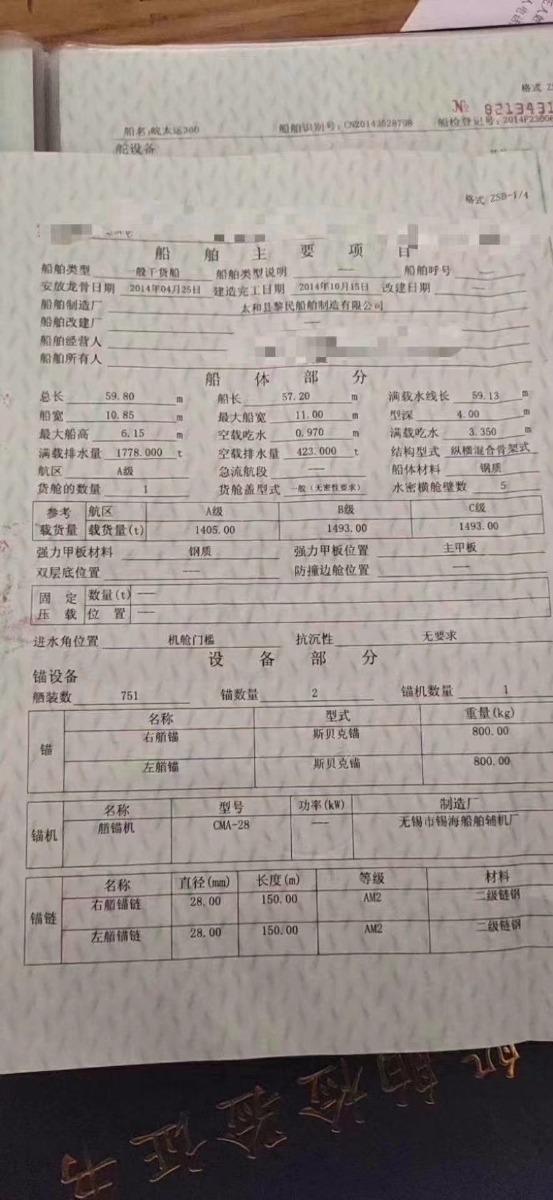 吉船59.8Ⅹ10.85X4。2014年10月15号太和造。潍柴350双机,782总吨 ,13道龙筋55下料折成50,3道主龙筋1公分。