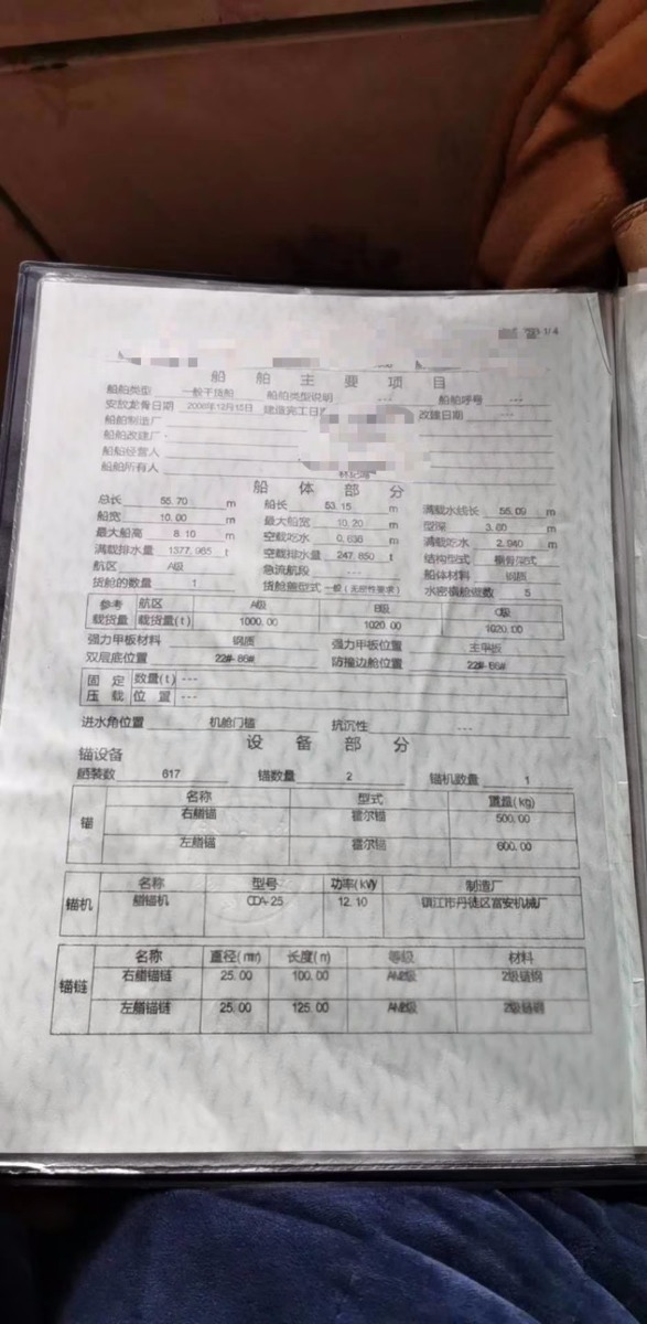 总吨597,B级1180吨,雷达导航测深仪助航设备齐全,污水处理器/自动篷架,有发电机组,