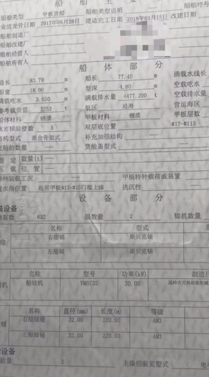 2018年造,参考吨3253吨甲板船,实载4300多吨,参数看图,报价1100万