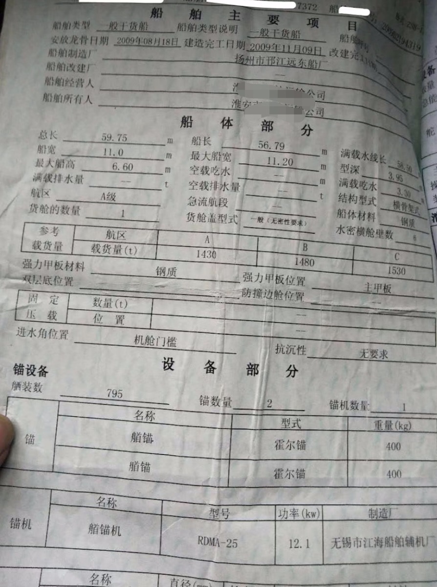 双站内全强,每边5道大刀片,仓口33/36米,雷达.卫导.测水仪.污水器等设置具备,登记价168万