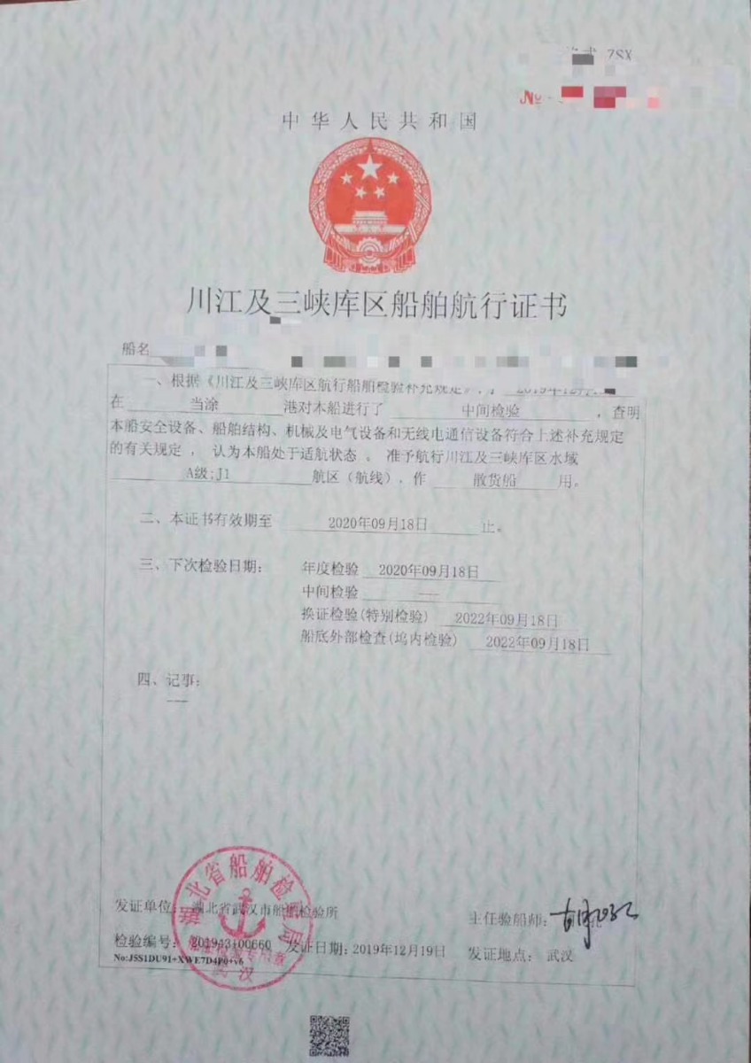 户籍港湖北武汉,大川走赶二层板全部16,龙筋9道下料1米,主机济柴6190,815*2,总吨位2692,2019年11月上滩打海漆保养的,航线,上海至重庆,宜宾,证书齐全,开航设备齐全,吉船价684万,