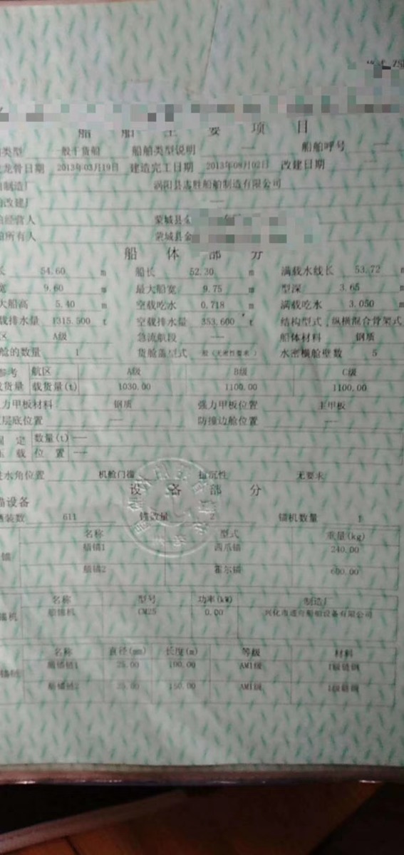 主机潍柴300*2,仓口上34,下36,有污水处理器,配员2人,