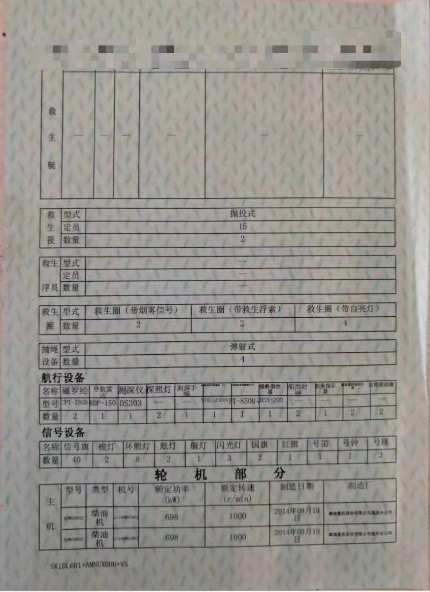 2014年96.6米7127吨货船 吉船长宽深:96.6米15.5米6.8米;主机型号:698kwx2; 登记报价980万