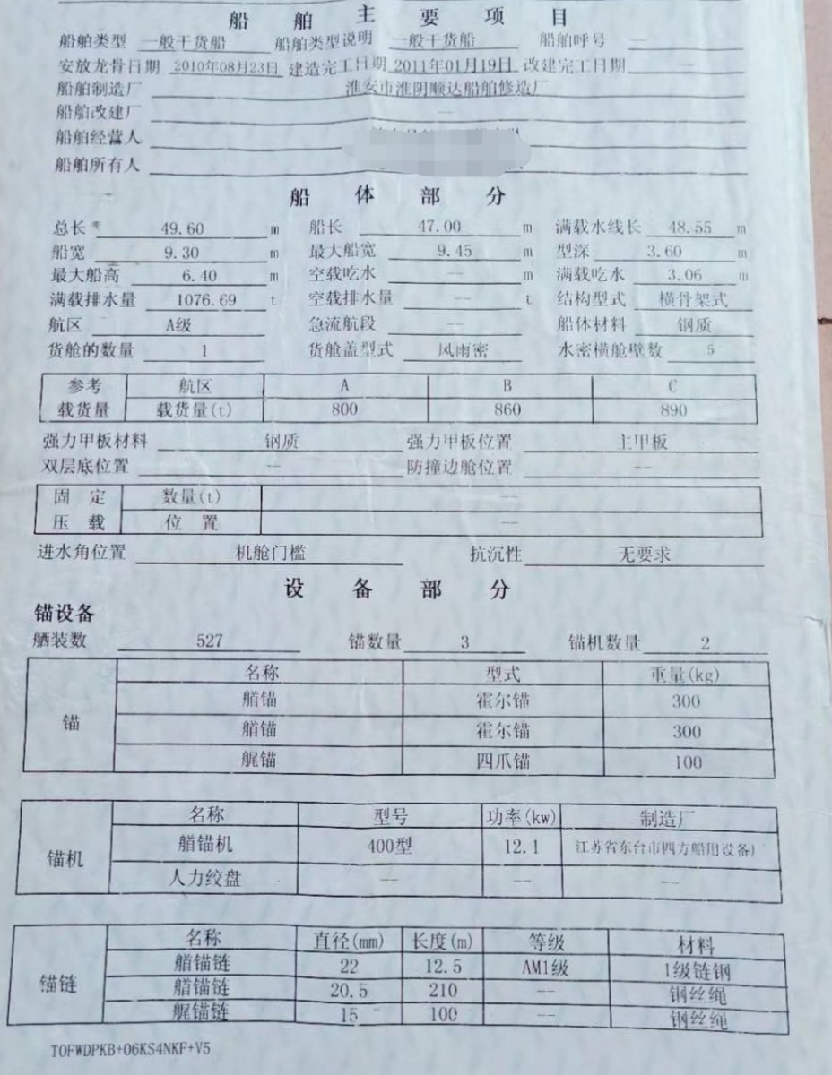 肋骨结构全强30折25,舱口总长32净长30宽七米,雷达测水仪高频卫导,监控夜视仪,前后空调,舱口泡散货插管,封仓设备齐全,