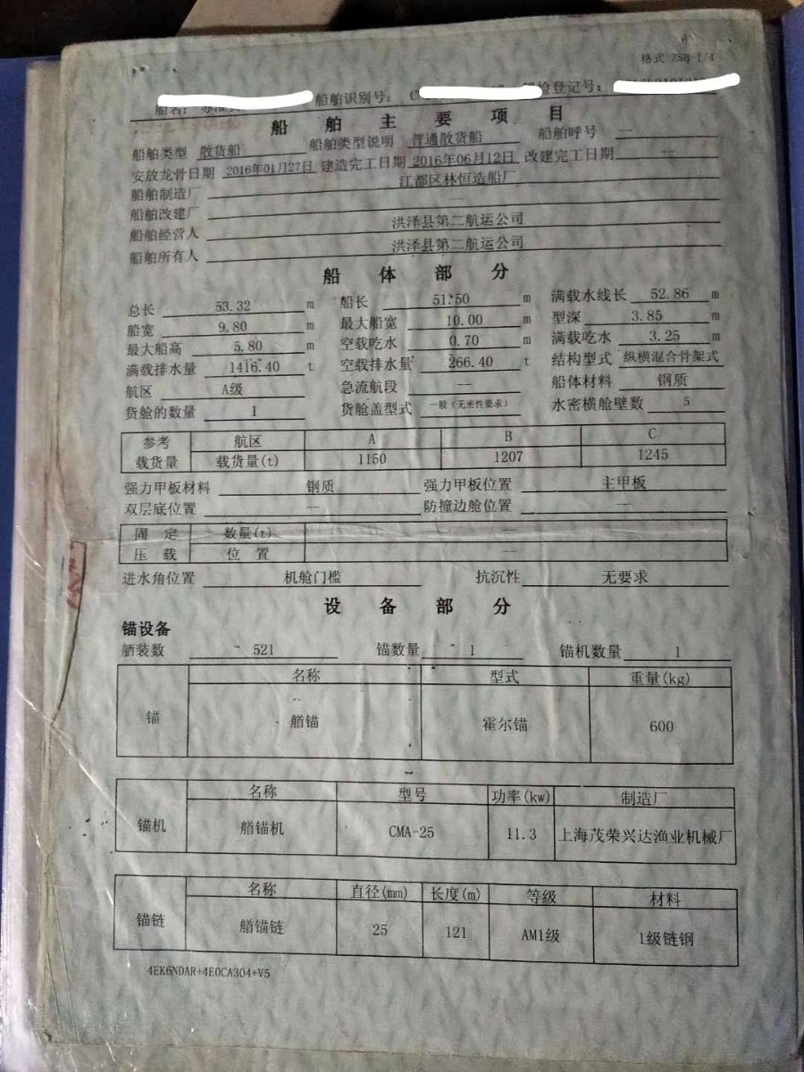 精品出售:53.32/9.8/3.85米,2016年7月建于江都林恒船厂,总吨598t,主机上柴400x2马力,前驾升降.通仓双站:甲板.大川.水绞10个,外壳全8个定尺板,二层板8个,包双站15道底龙50下料,5道主龙10个,副龙8个,双站内全强:外35下料,内25下料/6个板,每边6道大刀片,仓口32.5米,后楼1.5米,去年上滩油漆保养.中检,双空调.4寸泵.机划子.古野雷达.卫导.测水仪.双高频.污水器等具备,淮安户,开价206万,可议!