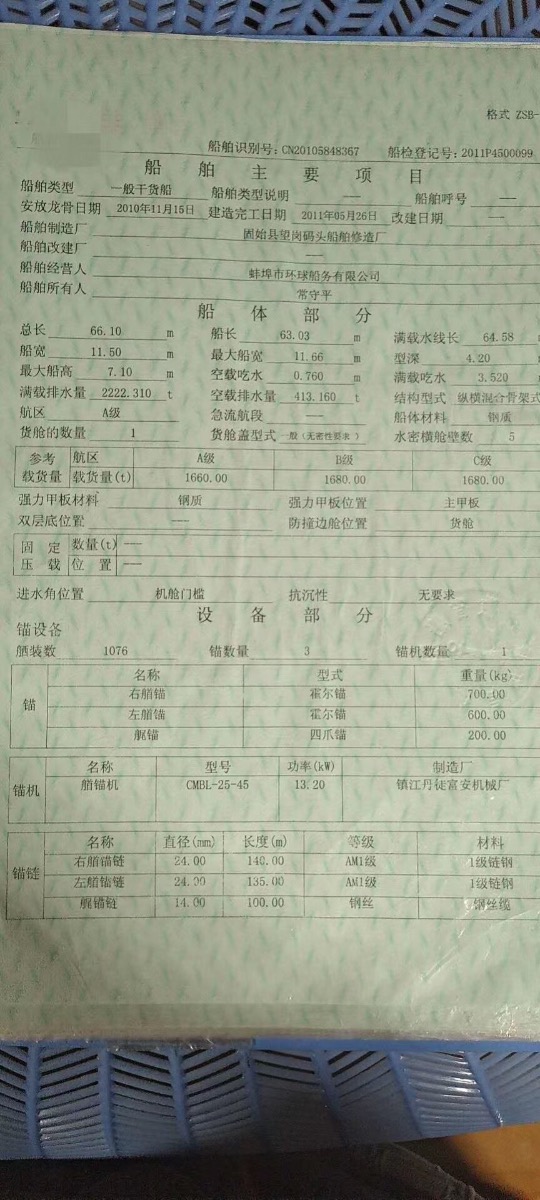 吉船 66+11.5+4.2=2230吨,2011年5月淮宾,350Ⅹ2,全强尾锚,双走杆,报价208万