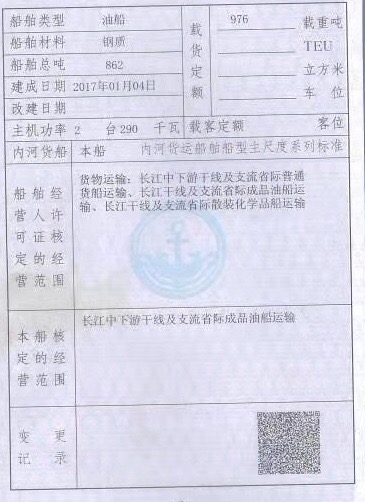 A级航区证载970吨