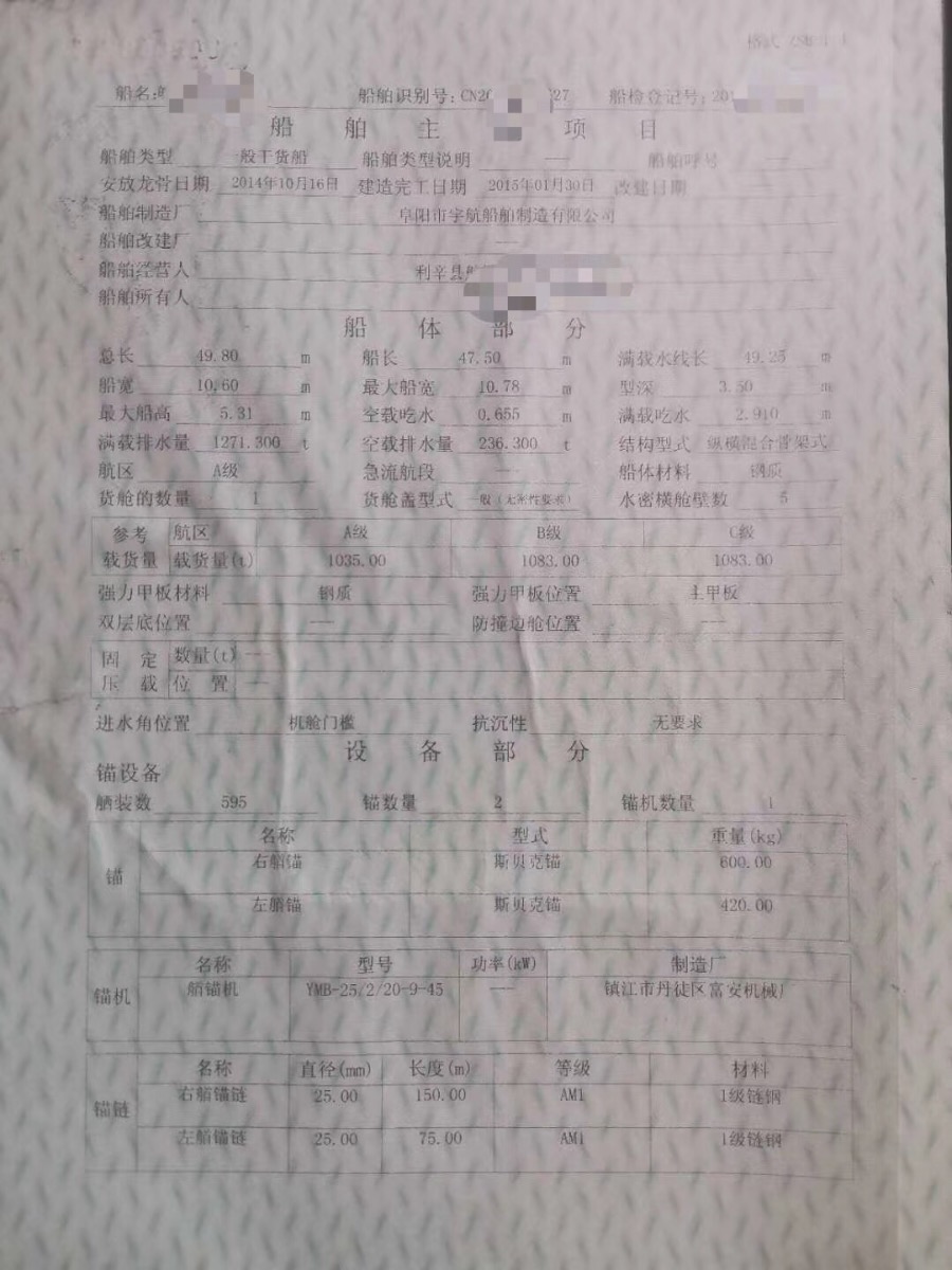 安徽太和2015年2月出厂,长49.8深3.5,宽10.60,总宽10.78,上海东风350×2,龙筋15道,下料55,水饺板1公分,船底1公分,甲板1公分,其余全8个,固定驾驶室,前压水仓有二层板方便过矮桥压水。ccs正规船板,报价169.6万