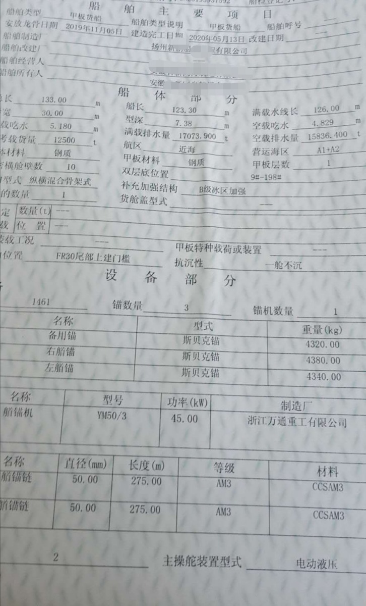 吉船长宽深:133米+30米+7.38米; 主机型号:广柴2400;