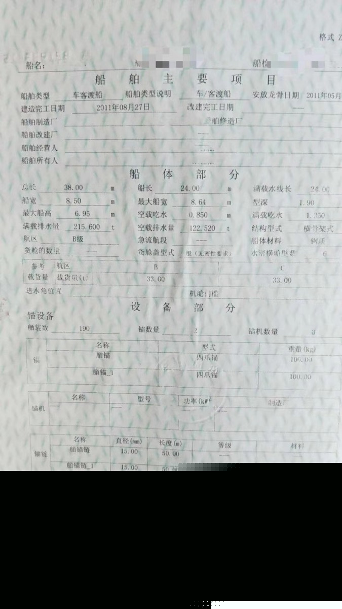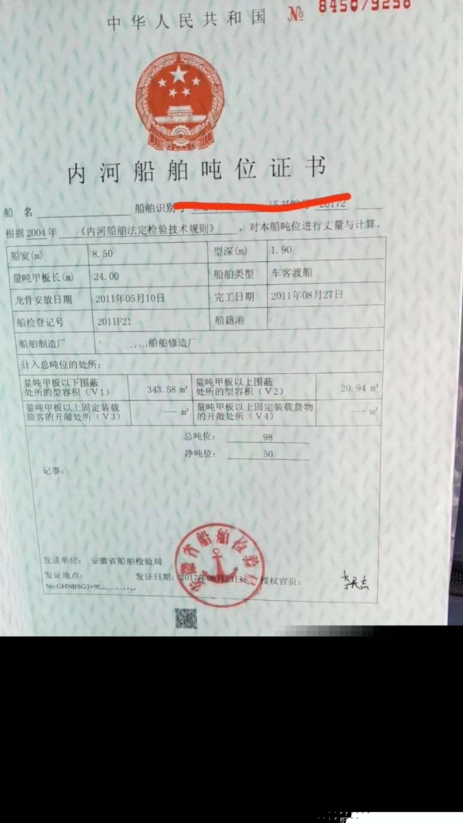 2011年总长38米.宽8.64米.深1.9米。主机150马力.双向行驶.内河证书齐全有效,在航船.吉船价70万.