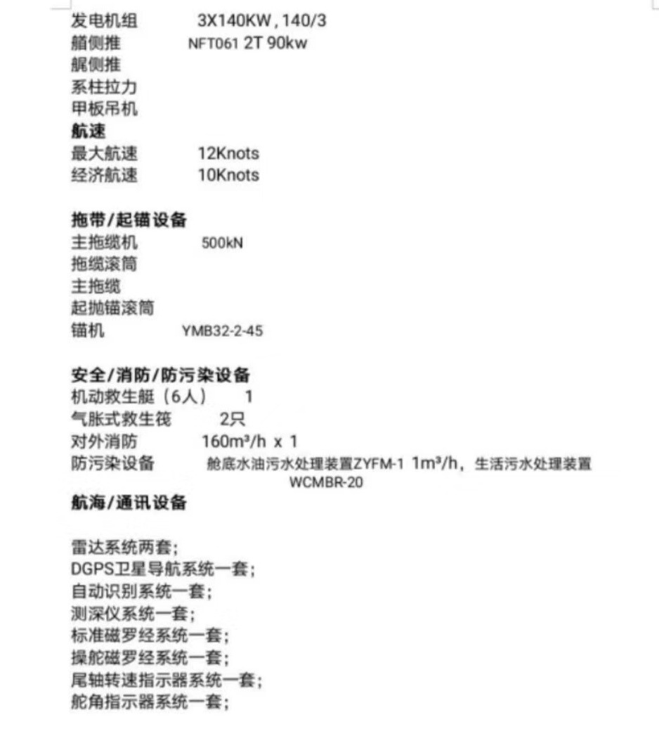 出售沿海CCS船级三用拖轮:2016年建造就没有用过,在办理证书中。