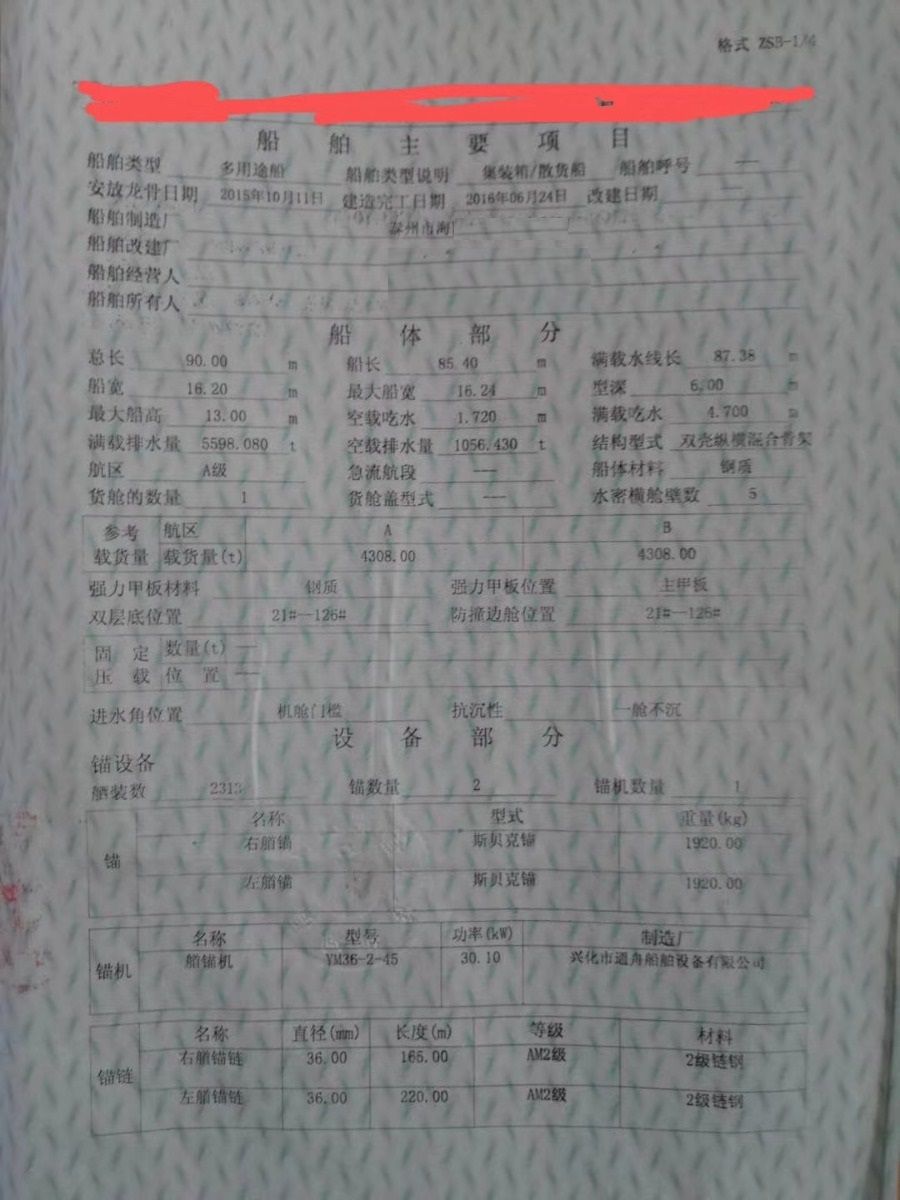 吉船长90宽16.2深6。2016年11月泰州。集装箱船5X5。两台潍柴8170。818马力。开价660万。