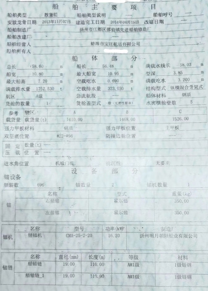 双站内.外结构全强,每边5道大刀片(看图),仓口35/37米,后楼1.6米,刚上滩油漆保养.特检,