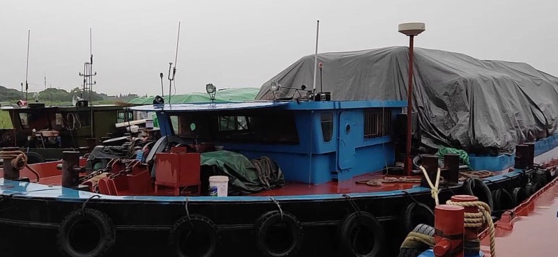 吉售:58.6/10.8/3.85米,2014年5月建于江都先进船厂,总吨740t,主机淄博350x2马力(电气两用),前驾液压,