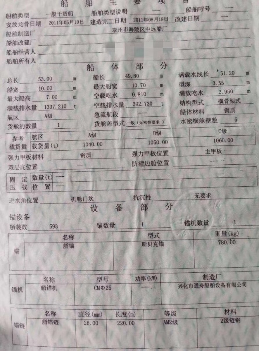 用料15*50双站通仓全强,外壳8甲川10;仓口31,5*8,后楼1.6米,总吨616,主机潍柴540配员2个二类;