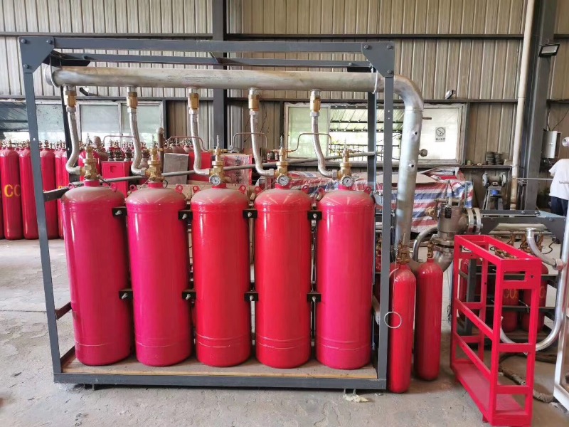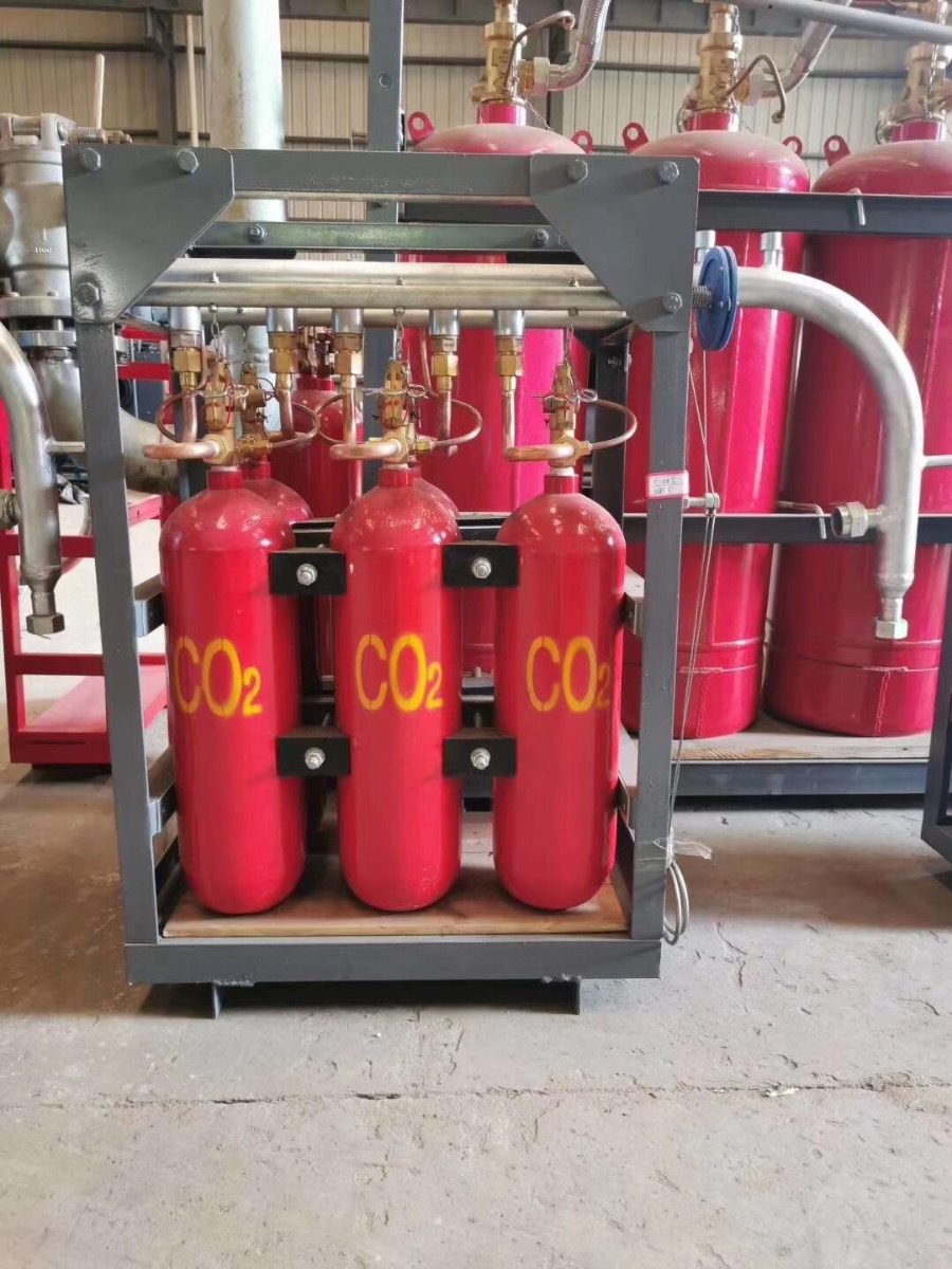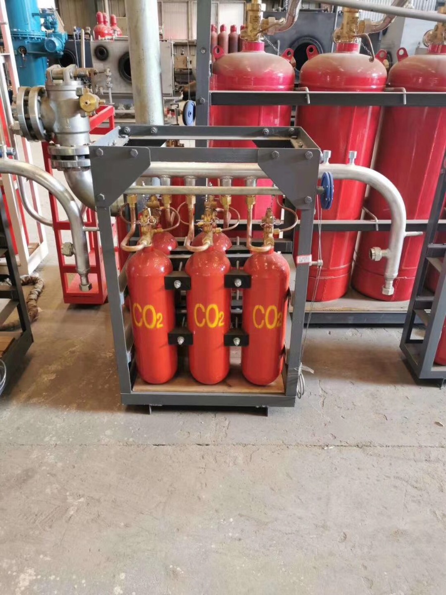 船用二氧化碳灭火装置由船用遥控释放站、控制阀箱、延时器、释放器、安全阀、选择阀、储气瓶组装、单向阀、喷嘴、泄气叫笛等主要部件组成。