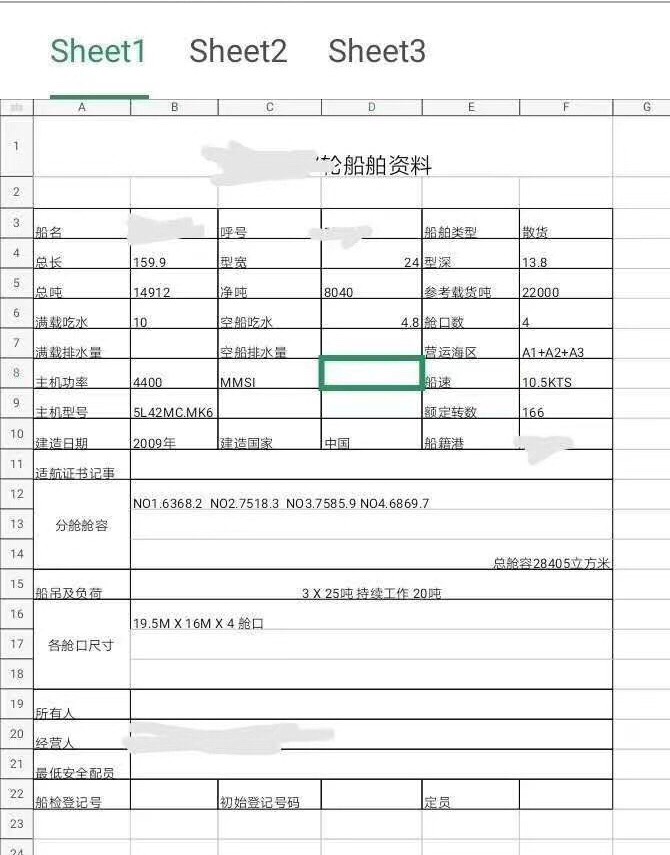 出售外贸,内贸双兼营22000吨散货船,无限航区,中国船级社ccs五星红旗,目前跑东南亚,4个货舱,28450立方,3台克令吊25吨,主机B&w,4400Kw,2024年特检,直接船东委托,价格面议!