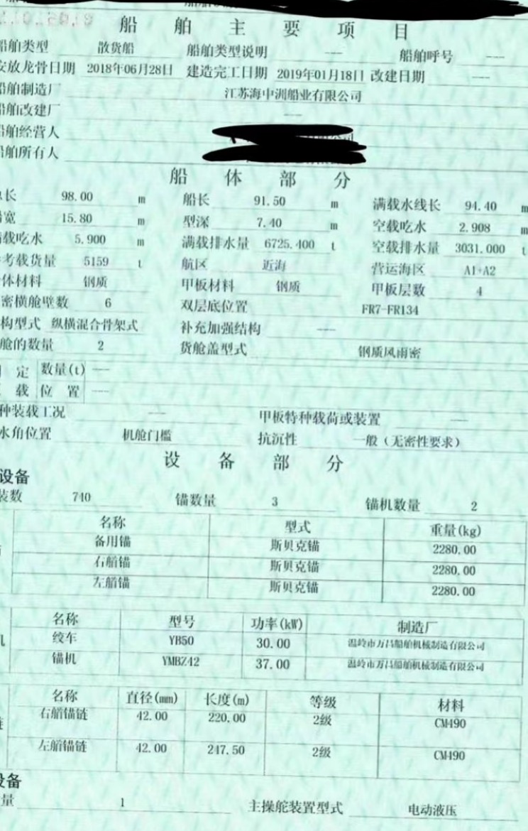 售:19年造5000吨散货船,老板自己造的质量非常好,在航船价格实惠。需要的私聊,1680万