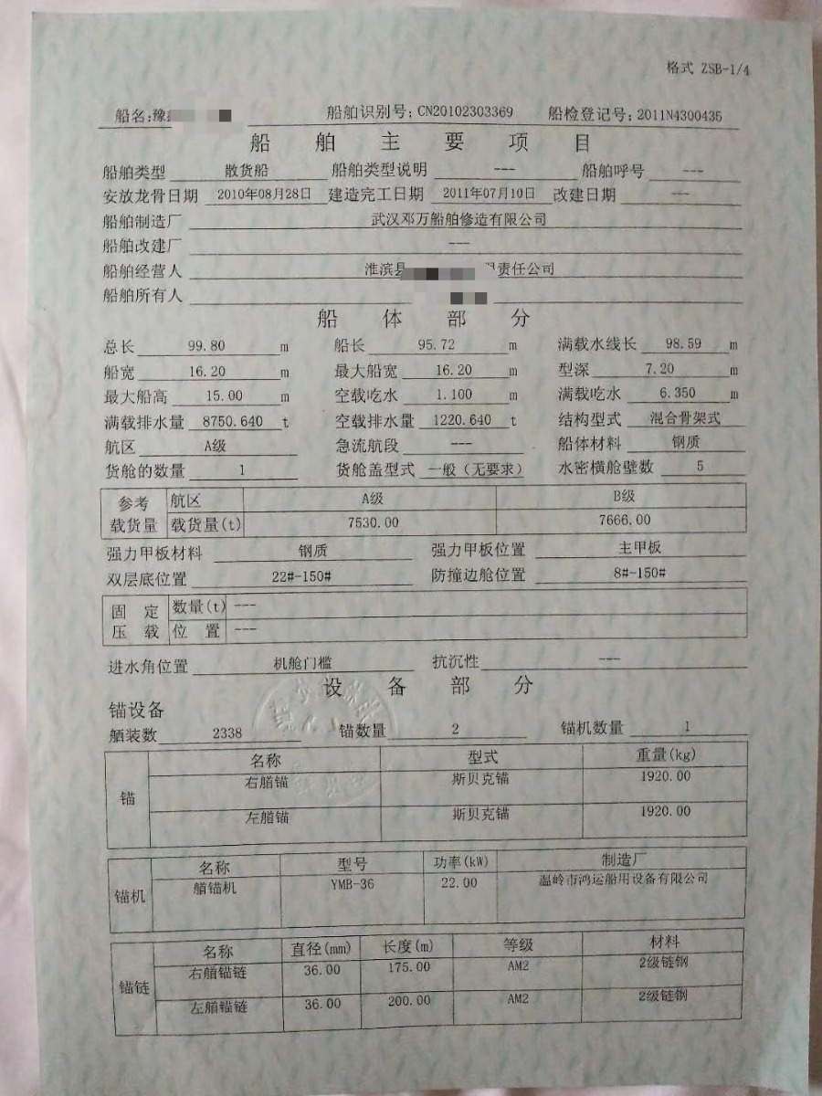 船级(CLASS):