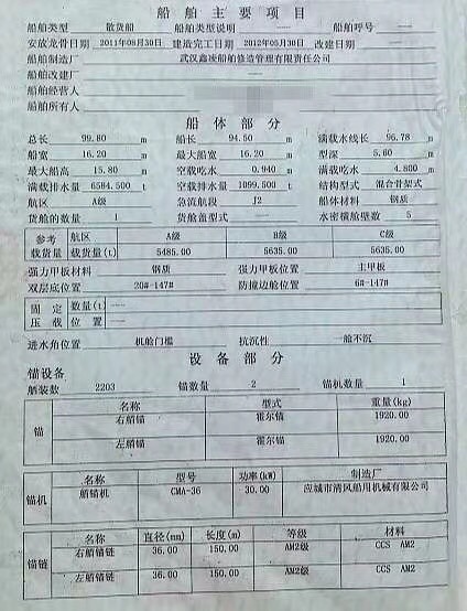 闸上4650吨,证书6635吨