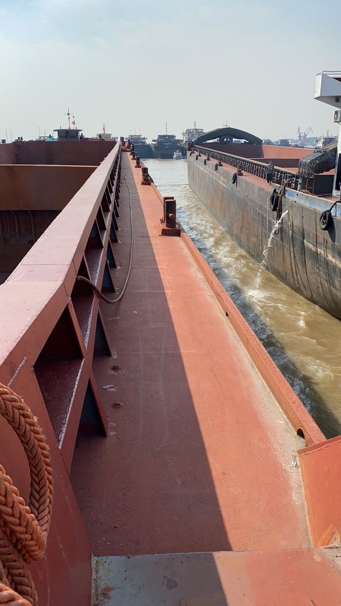 龙筋9道下料100,挂板10个12,二层板12甲板前后一台阶,仓口64*12*7,去年下半年已经上摊做油漆,保养,上个航次刚换的叶子,