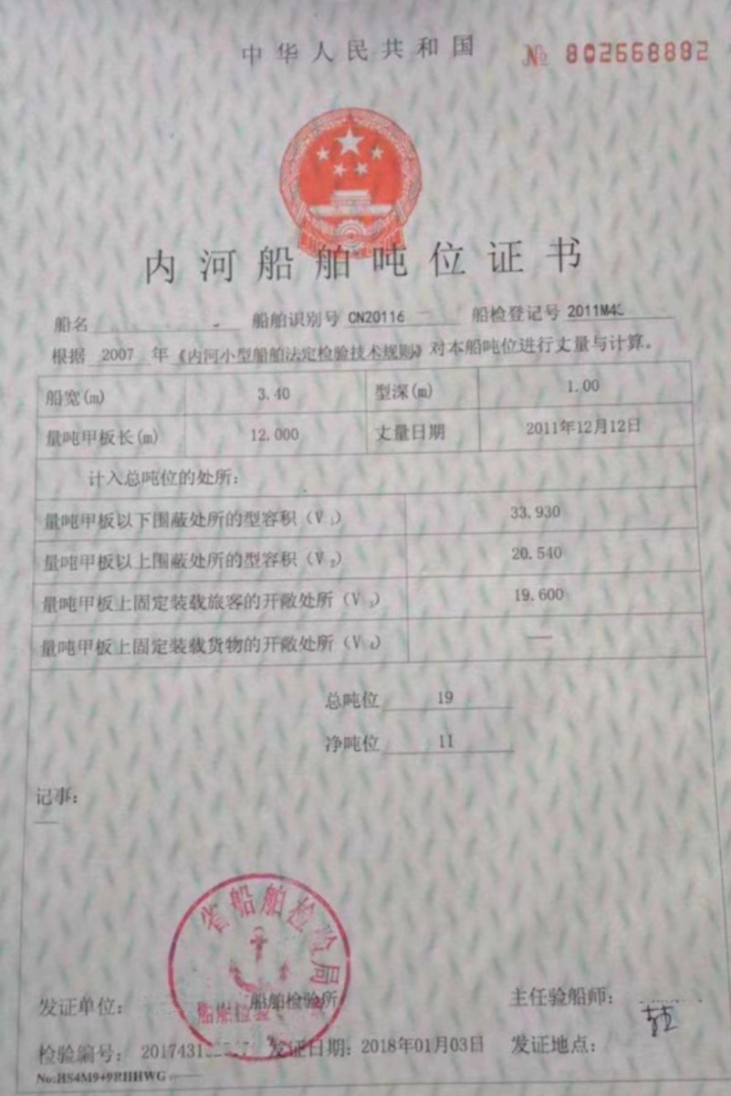 出售12年小渡船,证书齐全长13.7(不含跳板)+宽3.5+型深1米,