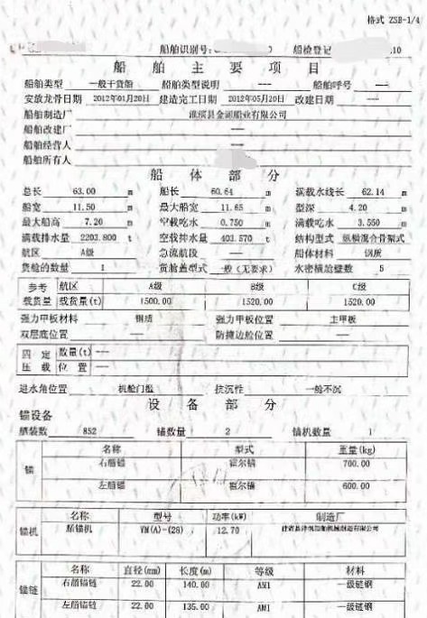 吉船 63/11.5/4.2=2130吨,2012.5月淮滨造,
