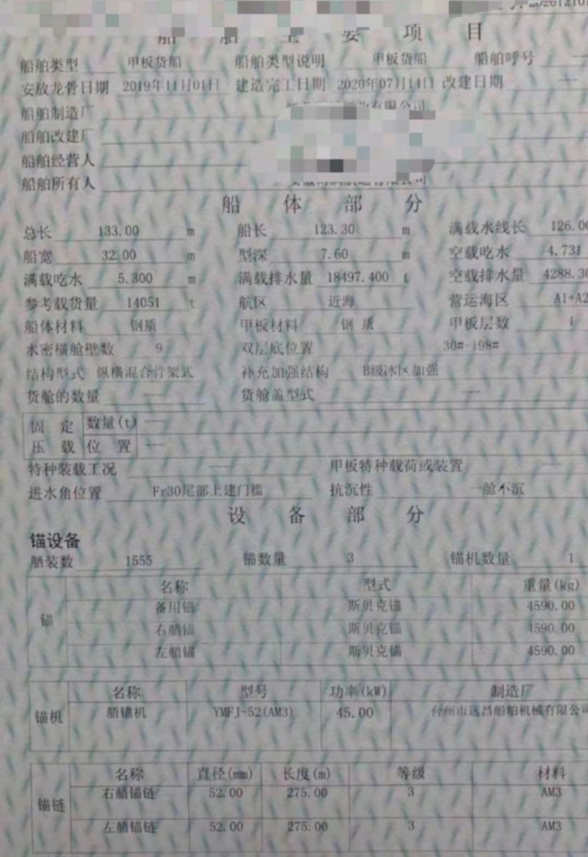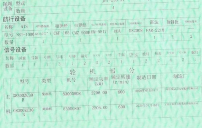 轮机宁波中策G8300 2206kw两台。甲板有效面积甲116米x32米