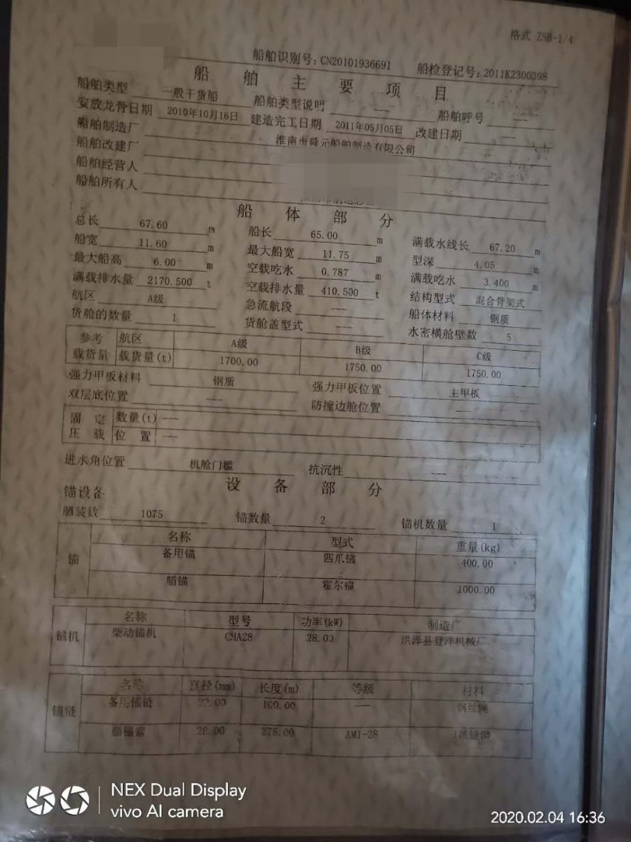 为了买卖双方权益和安全!交易过程请通过船舶交易网指定公示账户结算!