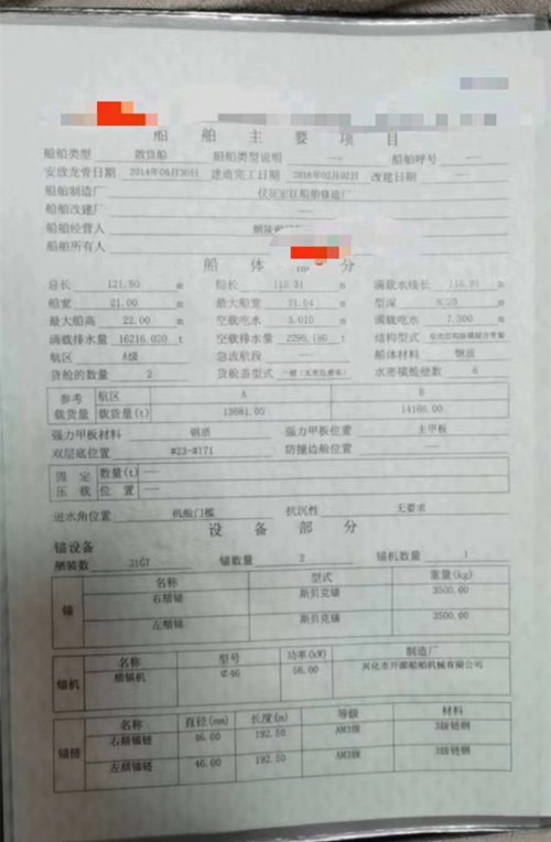 中驾驶2016年2月扬州造,铜陵户,最大船高22,主机淄博1350*2,龙筋11道,