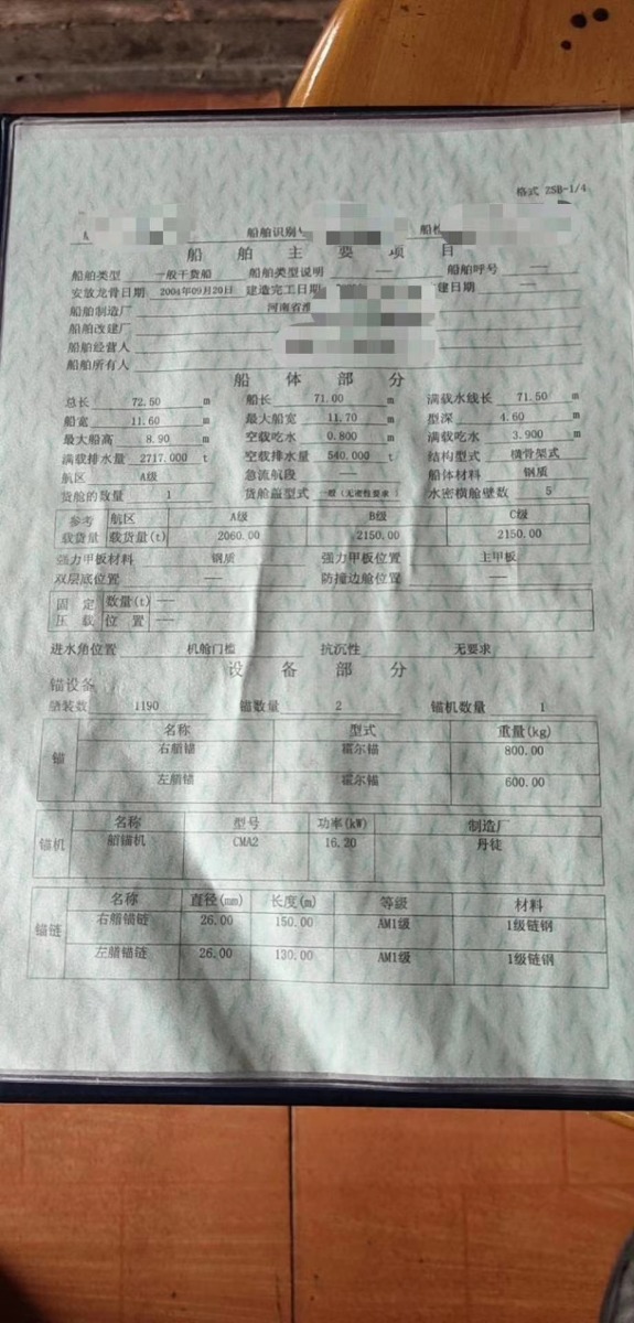 雷达卫导Als高频助航设备齐全,小机划子,半自动篷驾,前双锚1000~800公斤名一只,后锚1290公斤,