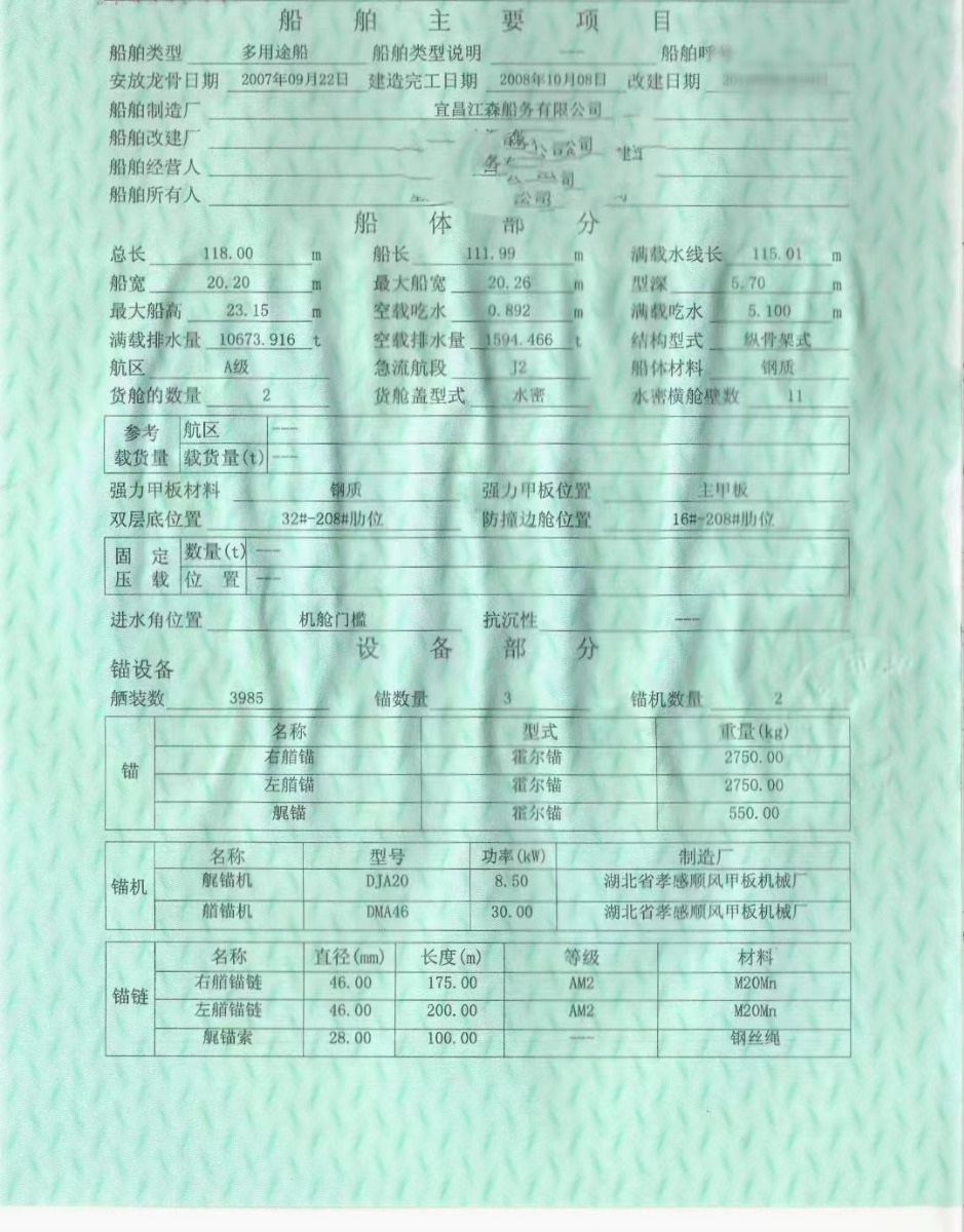 川江集散两用船,宜昌建造2008年,118*20.20*5.70 J2标船