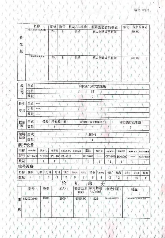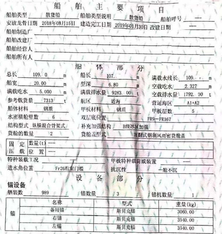 船尺寸(米) : 109*20*6.8