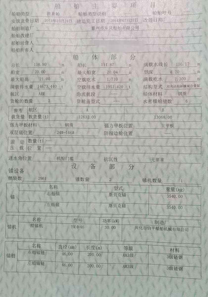 2014年7月份泰州造,双壳结构纵横混合骨架,质量没话说,八月份进坞保养大机保养,