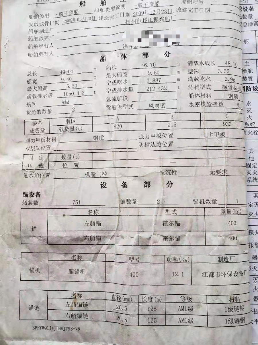 2009年12月扬州造,49.6米,9.4米,深3.6。主机淄博6170/450马力一台
