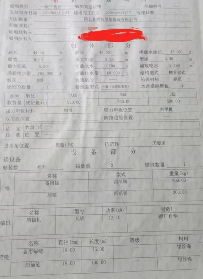 尖头中驾 11道35下料6个厚 中间一道70公分满梁 中仓加4道拉钢卷 水角付6个厚 古野雷达 设备齐全