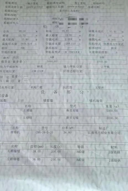 2009年10月泰州造,船籍港铜陵,总吨位3290,中驾三楼,双站通仓中间满粱,
