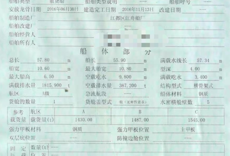 2016年57.8米1815吨货船