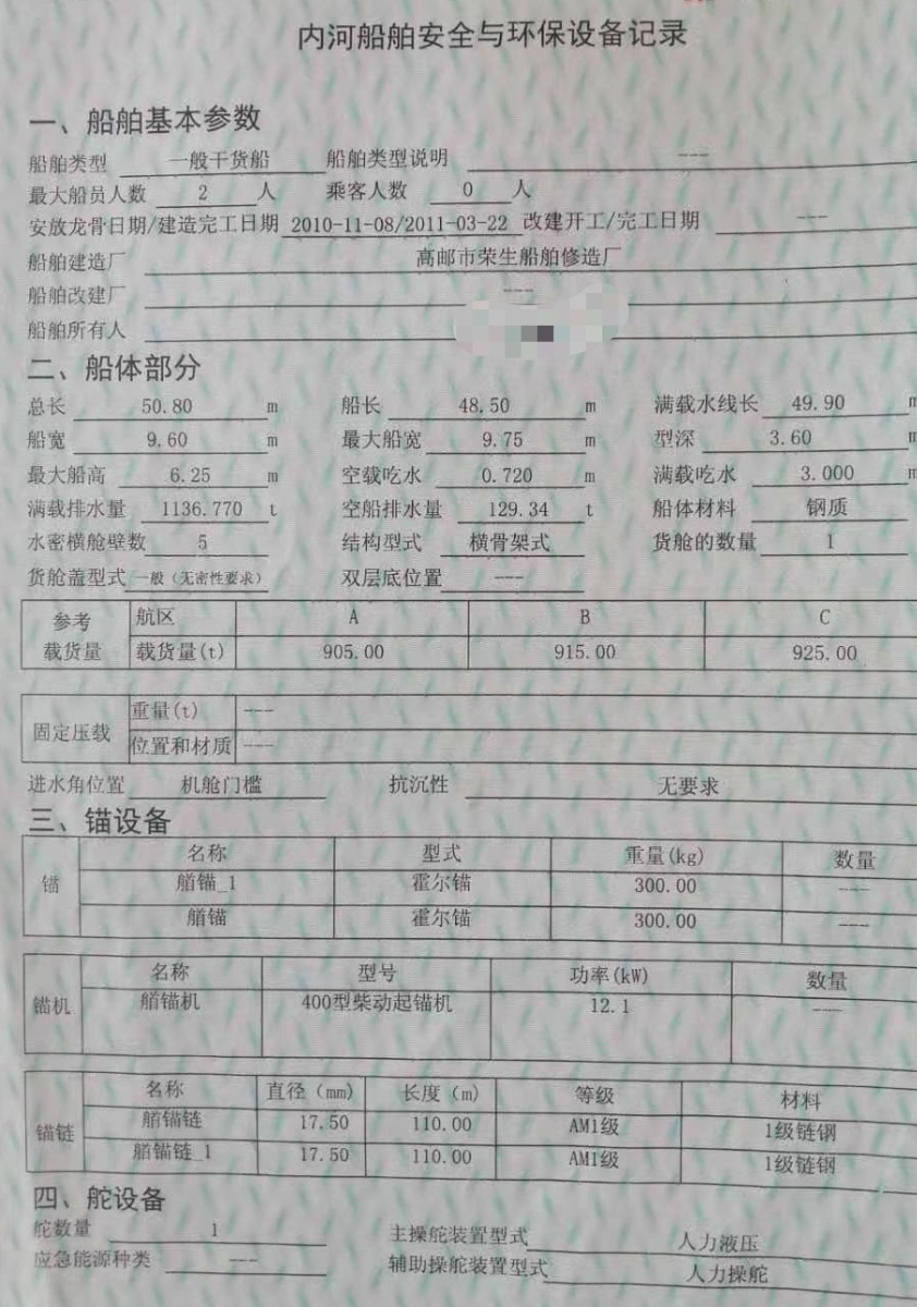 2011年3月份高邮造,双占, 长50.8,宽9.6,深3.6,450潍柴,
