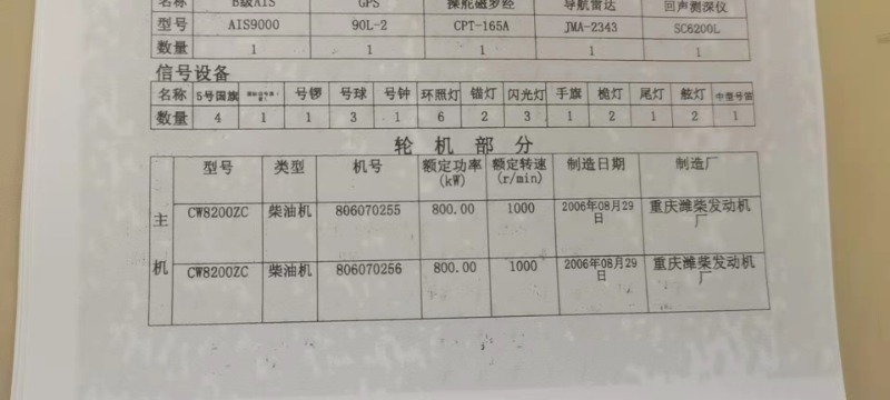 主机型号:重庆潍柴CW8200 800KWx2 ;